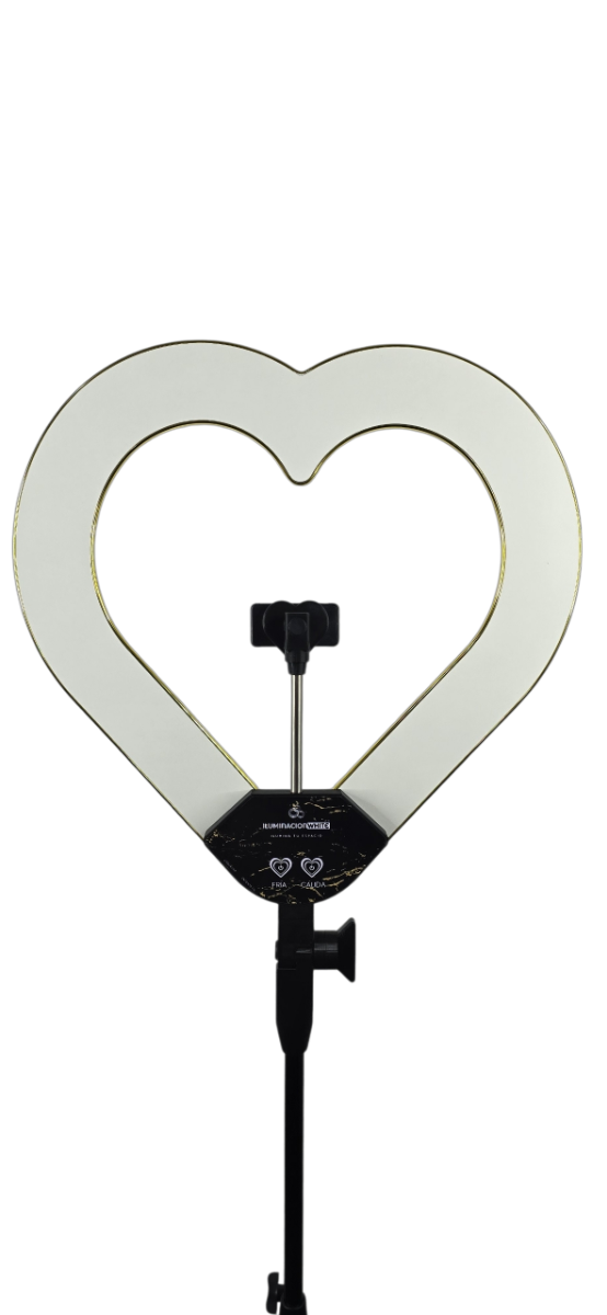Esta edición es con bordes color oro brillante!!!. Tanto la base del iluminador como el panel y el trípode. Posee la misma potencia que el iluminador corazón de la línea clásica con panel táctil en negro.
