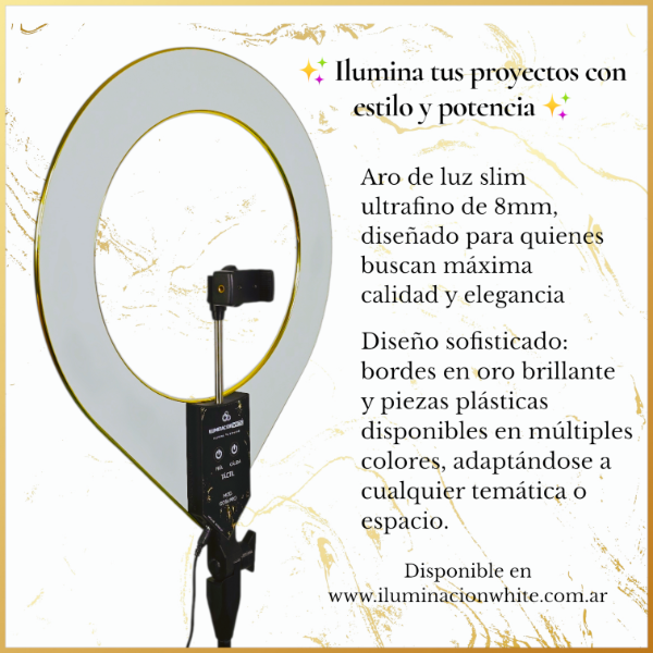 Esta edición es con bordes color oro brillante!!!. Tanto la base del iluminador como el panel y el trípode. Posee la misma potencia que el iluminador Gota Pro de la línea clásica con panel táctil en negro.